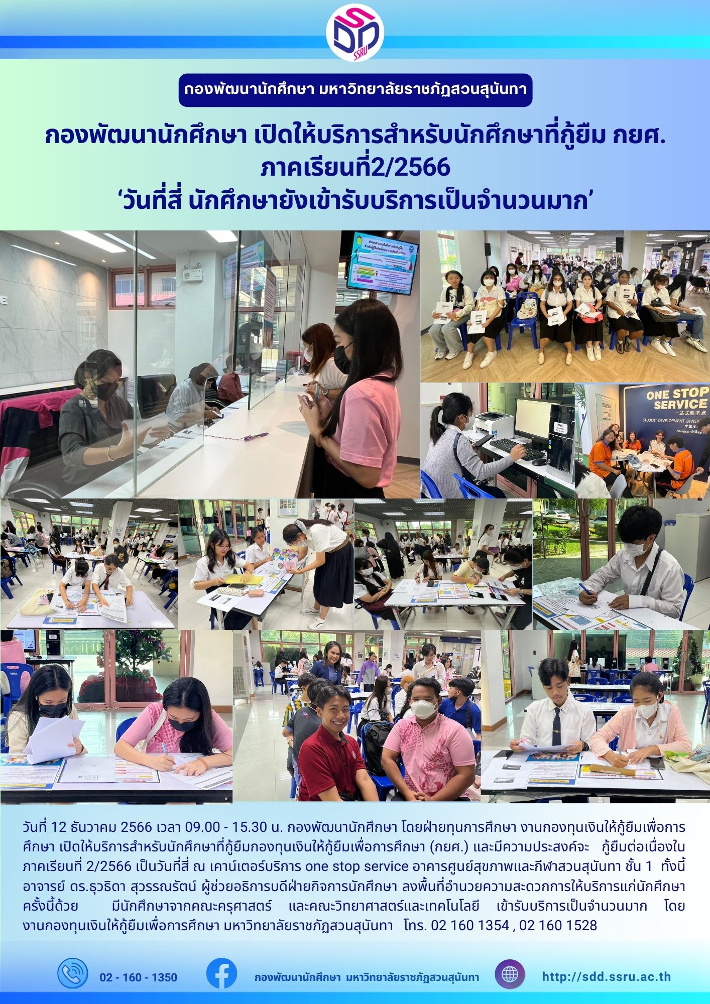 กองพัฒนานักศึกษา เปิดให้บริการสำหรับนักศึกษาที่กู้ยืม กยศ. ภาคเรียนที่2/2566 ‘วันที่สี่ นักศึกษายังเข้ารับบริการเป็นจำนวนมาก’