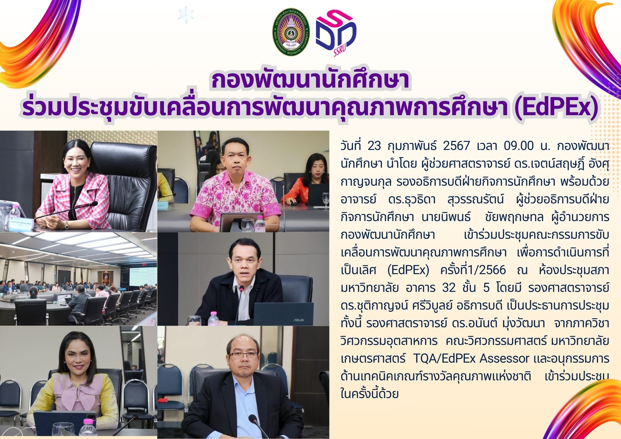กองพัฒนานักศึกษา ร่วมประชุมขับเคลื่อนการพัฒนาคุณภาพการศึกษาสวนสุนันทา เพื่อการดำเนินการที่เป็นเลิศ (EdPEx)