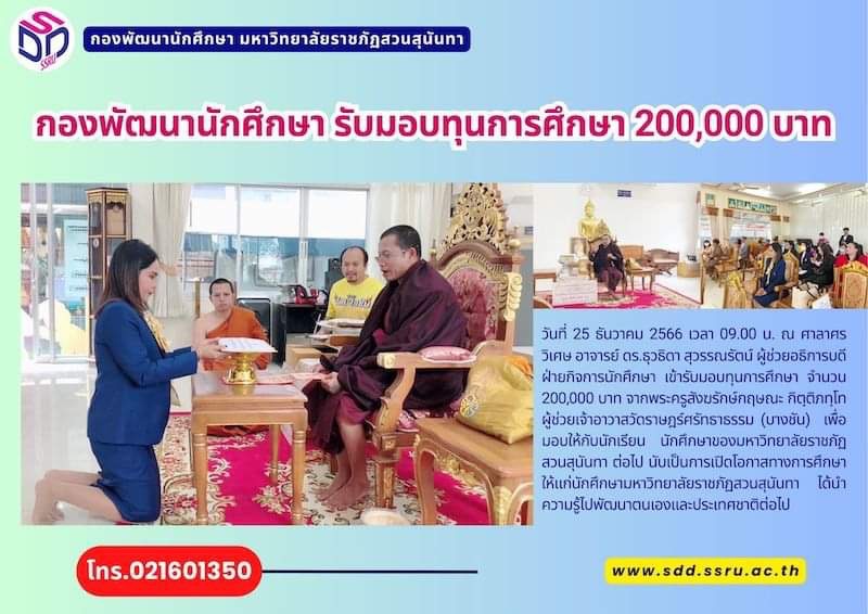 Home > News > Scholarships News > กองพัฒนานักศึกษา รับมอบทุนการศึกษา 200,000 บาท
