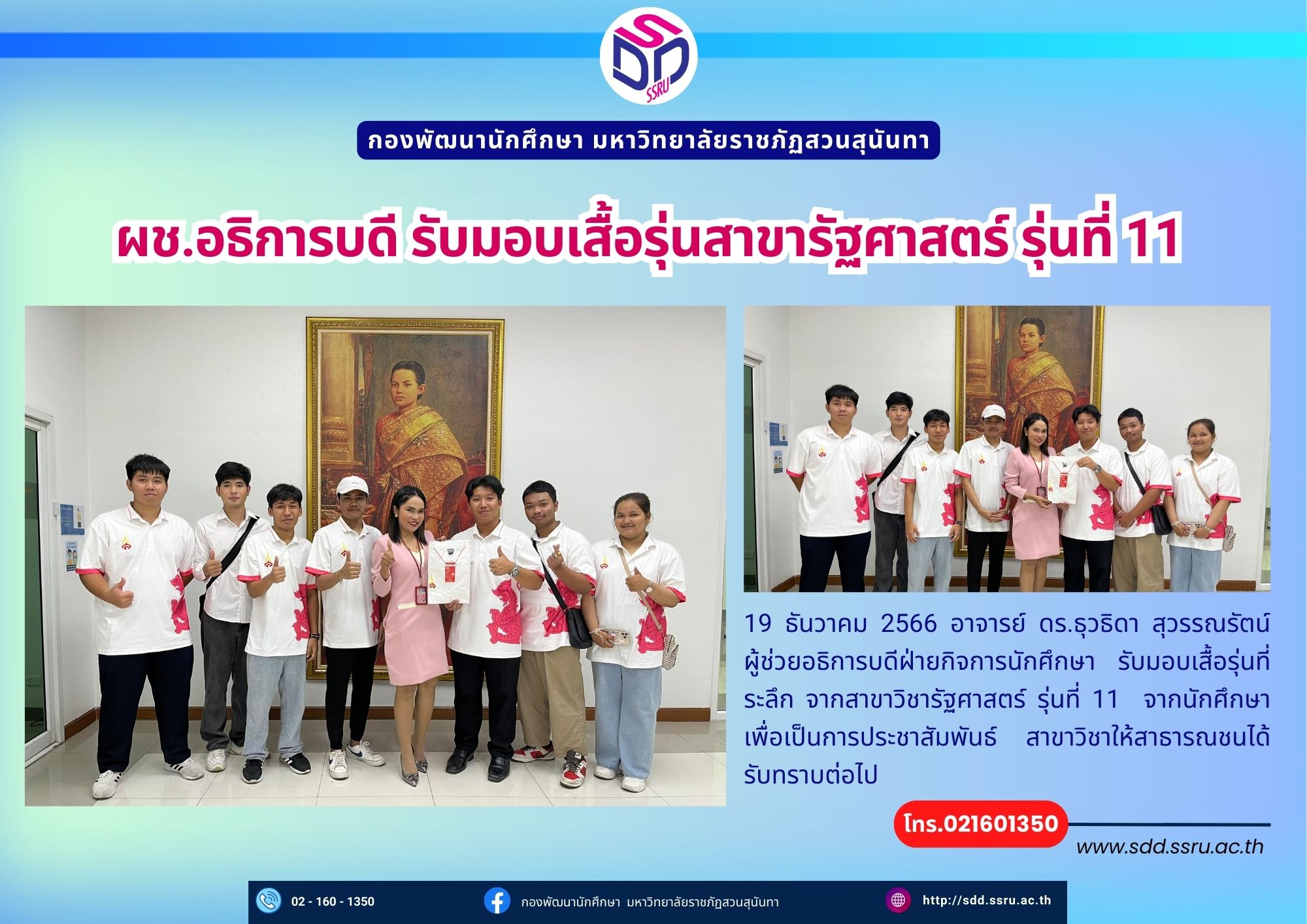 ผช.อธิการบดี รับมอบเสื้อรุ่นสาขารัฐศาสตร์ รุ่นที่ 11