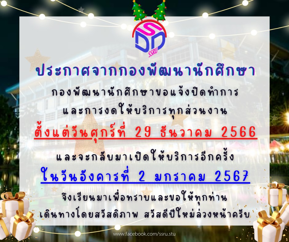 https://www.facebook.com/ssru.stu/posts/pfbid02NDePyjLCyxQdB92CHCicVJcpNTZPyjhCbDuKzAmco6AyD6LGCukF59igKckvuBwLl
