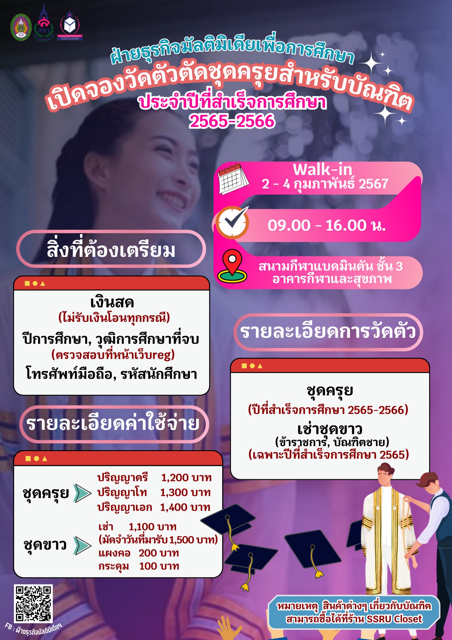 หมายเหตุ สินค้าต่างๆ เกี่ยวกับบัณฑิตสามารถซื้อได้ที่ร้าน SSRU Closet