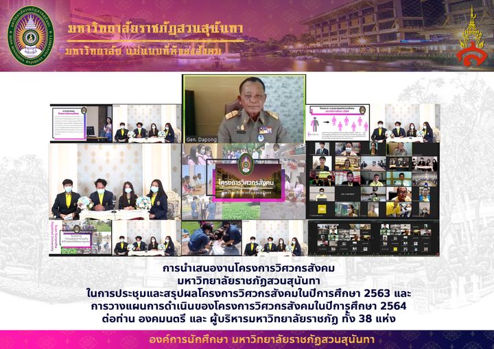 ในระหว่างวันที่ 17-25 พฤษภาคม 2563 ได้มีการประชุมสรุปผลการดำเนินงานโครงการวิศวกรสังคมภายในปีการศึกษา 2563 และแถลงแผนการดำเนินงานในปีการศึกษา 2564 ต่อท่านองค์มนตรี พลเอก ดาว์พงศ์ รัตน์สุวรรณ และท่านผู้บริหาร ทั้ง 38 ราชภัฏ ในการคับเคลื่อนโครงการวิศวกรสังคม และ เพื่อทำให้มหาวิทยาลัยราชภัฏเป็นมหาวิทยาลัย เพื่อท้องถิ่นอย่างแท้จริง และ ฝึกให้นักศึกษาได้เป็น นักคิด นักสือสาร นักประสาน และนักสร้างนวัตกร เพื่อพัฒนาท้องถิ่นได้อย่างยั้งยื่น