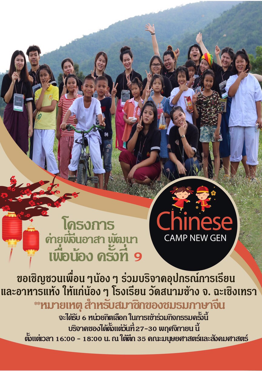 ขอเชิญสมาชิกชมรมเข้าร่วมโครงการค่ายพี่จีนอาสา