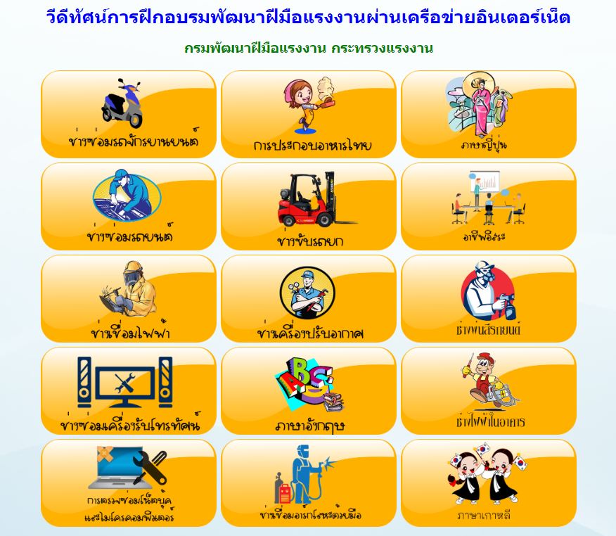 เรียนฟรีมาอีกแล้วจ้าาา!! คราวนี้มาสายอาชีพบ้าง จัดมาเน้น ๆ 15 อาชีพสำคัญ สู้วิกฤตโควิด กรมพัฒนาฝีมือแรงงาน สังกัดกระทวงแรงงาน เชิญชวนประชาชนที่อยู่บ้าน หยุดเชื้อ ช่วยชาติ มาเปิดโอกาสเรียนทักษะสายอาชีพผ่านเว็บไซต์ มีให้เลือกเรียนถึง 15 อาชีพสำคัญที่ตลาดต้องการสูง ทั้งหมดจะเรียนในรูปแบบวิดีโอ สอนโดยวิทยากรผู้เชี่ยวชาญ ไม่ต้องลงทะเบียนอะไร แค่คลิกเข้าไปที่ http://eit.dsd.go.th/dsdtraining.php