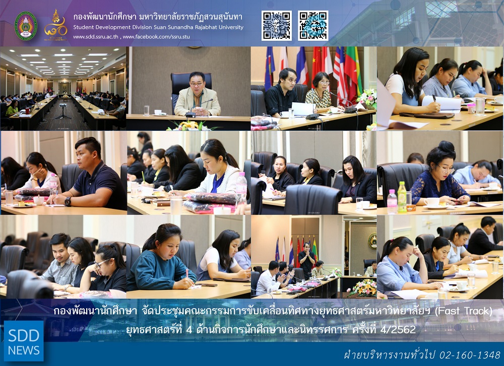 โดยการประชุมครั้งนี้ กองพัฒนานักศึกษา ในนามหน่วยงานเจ้าภาพดำเนินการขับเคลื่อนตัวชี้วัด ยุทธศาสตร์ที่ 4 ด้านกิจการนักศึกษาและนิทรรศการ ได้เสนอประเด็นพิจารณากิจกรรม/โครงการ Fast Track เพื่อสนับสนุนการดำเนินงานของตัวชี้วัดและผลักดันให้ผลการดำเนินงานของตัวชี้วัดมีประสิทธิภาพมากยิ่งขึ้น จากการประชุมคณะกรรมการขับเคลื่อนทิศทางยุทธศาสตร์มหาวิทยาลัย ประจำปีงบประมาณ พ.ศ.2562 (Fast Track) ณ จังหวัดเพชรบุรี ซึ่งคณะกรรมการฯ ได้มีข้อเสนอให้หน่วยงานนำเสนอหรือขออนุมัติงบประมาณสนับสนุนการดำเนินงานของตัวชี้วัดได้เพื่อให้การดำเนินงานบรรลุตามเป้าหมายที่วางไว้ ที่ประชุมฯ ได้มีมติเห็นชอบตามข้อเสนอแนะ และมอบหมายให้กรรมการและเลขานุการ (กองพัฒนานักศึกษา) ดำเนินการตามขั้นตอนต่อไป